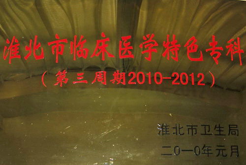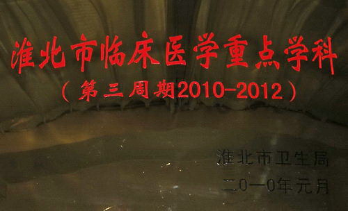 2010年1月,经淮北市卫生局专家评审委员会的综合评定,我院超声中心、产科分别被确定为“淮北市临床医学重点学科(第三周期)”及“淮北市临床医学特色专科(第三周期)”。