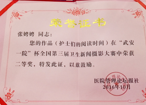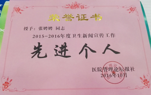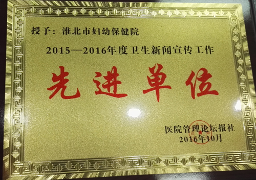 近日,由全国医院管理论坛、现代护理报社举办的2015-2016年度医院文化与发展论坛暨新闻宣传高级研讨班在重庆隆重召开,会上表彰了2015-2016年度来自全国26个省在卫生新闻宣传工作中表现突出的单位与个人,淮北市妇幼保健院荣获卫生新闻宣传先进单位称号,市妇幼保健院张娉娉同志被全国医院管理论坛、现代护理报评为卫生新闻宣传先进个人,并在“武安一院杯”全国第三届卫生新闻摄影大赛中荣获二等奖。