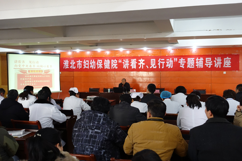为深入学习贯彻党的十八届六中全会精神,认真开展“讲看齐、见行动”学习讨论,1月20日下午,市妇幼保健院举办“讲看齐、见行动”专题辅导讲座,特邀淮北市委党校杨以谦教授做“讲看齐、见行动”为主题的专题辅导。讲座由院党总支书记、院长任少杰同志主持,全院党员参加了学习。