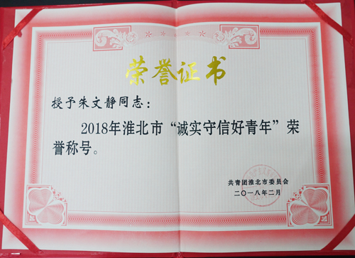 近日,市妇幼保健院外科医生魏标、朱文静分别荣获2018年淮北市“创新创业好青年”荣誉称号、2018年淮北市“诚实守信好青年”荣誉称号。同时,两人获2018年安徽省“争做新时代向上向善好青年”提名奖。